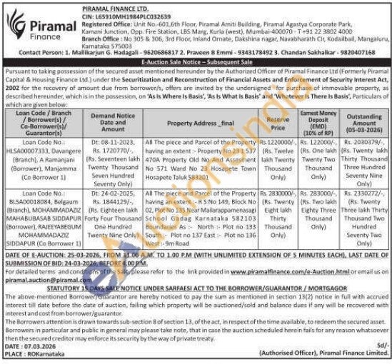 All The piece and Parcel of the Property having an extent RS No 145, Block No 02, Plot No 135 Near Mallarappamenasagi School Gadag Karnataka 582103 Boundaries As North Plot no 133 South Plot no 157 East Plot no 136 West:-9m Road