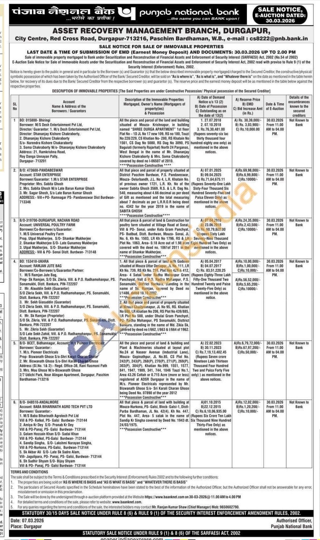 2. All that piece and parcel of property situated at Mouza Chaityannapur, JL. No 95, RS. Khatian No 688, LR Khatian No 206, RS Plot No 439/885, LR Plot No 588, under Dhulai Gram Panchyet, PO- Radha Mohanpur, PS Sonamukhi, Disttrict Bankura, standing in the name of Md. Zikia Sk. covered by deed no 1/662, 1/663 & 1/664 of 1962. Possession Constructive***