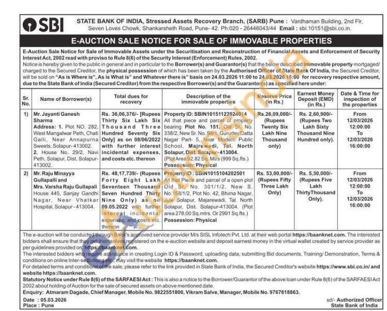 All that Piece and parcel of a open plot Old Sr. No. 301/1/2, New S. No 158/1/2, Plot No. 42, Bhima Nagar. Jule Solapur, Majarewadi, Tal North Solapur, Dist. Solapur-413004 (Piot area 278.00 Sq.mtrs. Or 2991 Sq.fts
