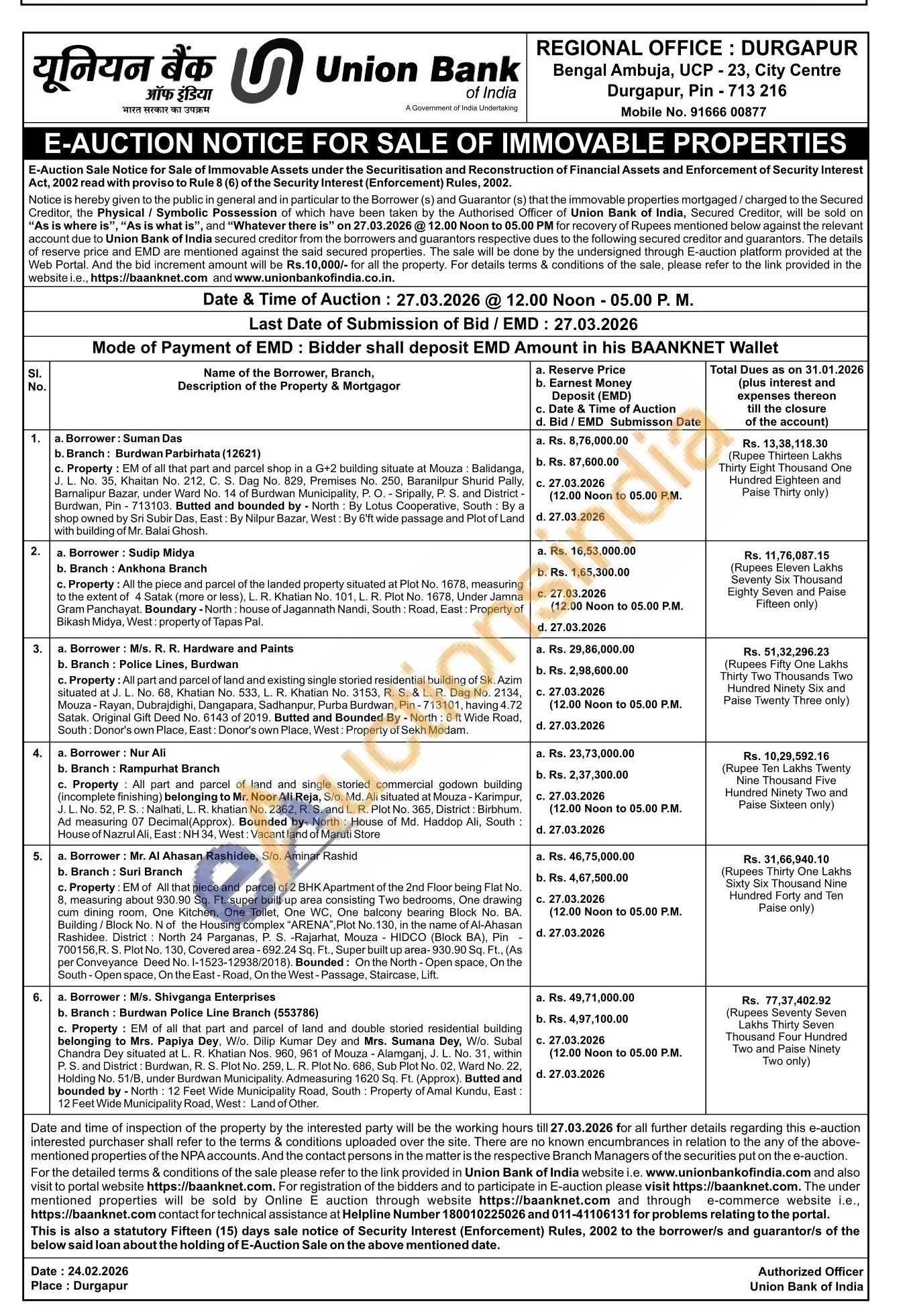 All the piece and parcel of the landed property situated at Plot No. 1678, measuring to the extent of 4 Satak (more or less), L. R. Khatian No. 101, L. R. Plot No. 1678, Under Jamna Gram Panchayat. Boundary - North: house of Jagannath Nandi, South: Road, East: Property of Bikash Midya, West: property of Tapas Pal.