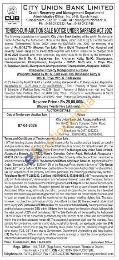 Contact Telephone No.0477-2252233, Cell Nos: 9387965422, 8925984568