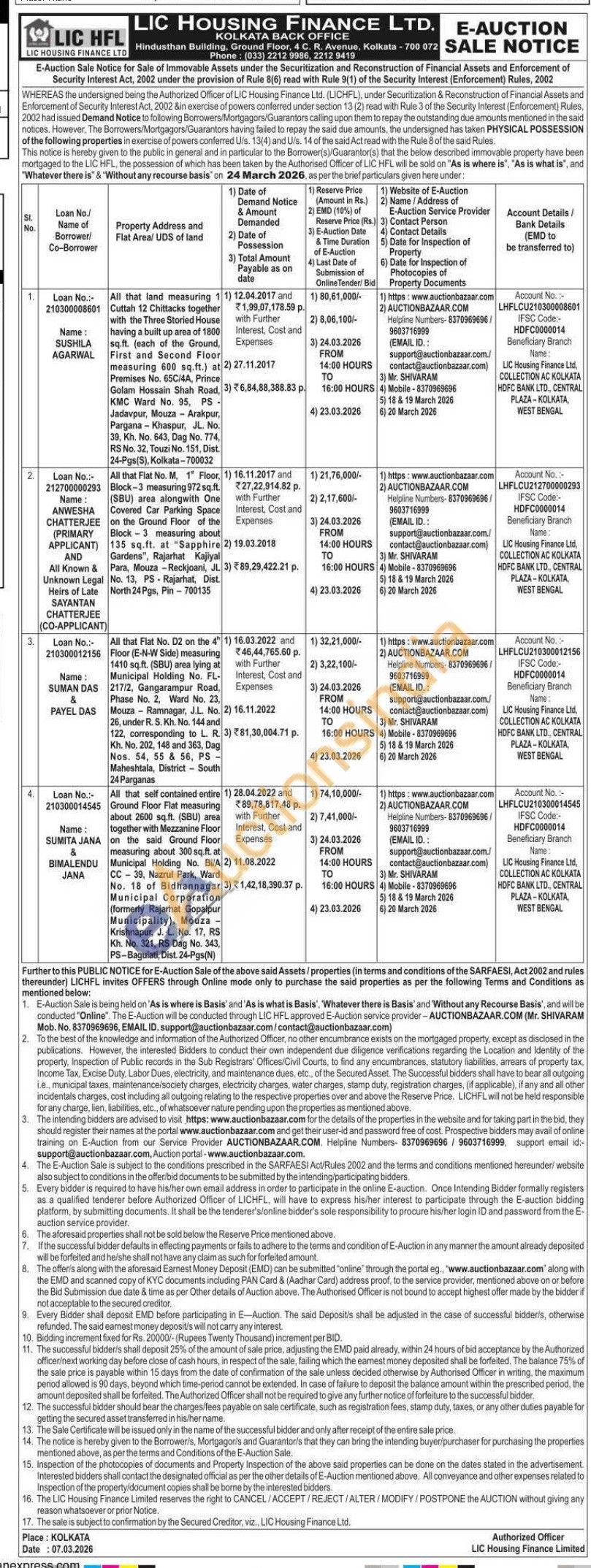 All that land measuring 1 Cuttah 12 Chittacks together with the Three Storied House having a built up area of 1800 sq.ft. (each of the Ground, First and Second Floor measuring 600 sq.ft.) at Premises No. 65C/4A, Prince Golam Hossain Shah Road, KMC Ward No. 95, PS-Jadavpur, Mouza - Arakpur, Pargana Khaspur, JL. No. 39, Kh. No. 643, Dag No. 774, RS No. 32, Touzi No. 151, Dist. 24-Pgs(S), Kolkata-700032