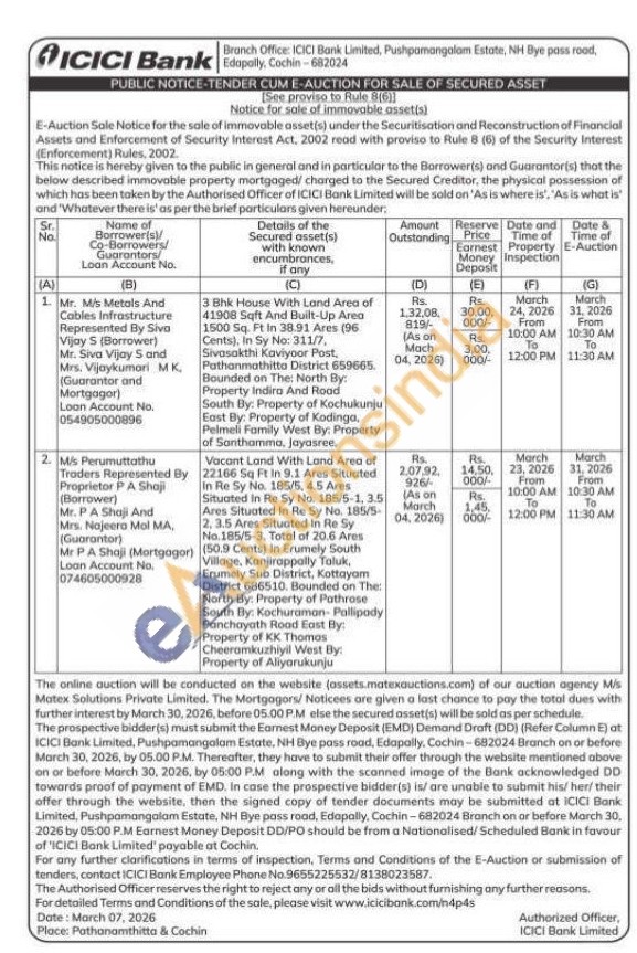 3 Bhk House With Land Area of 41908 Sqft And Built-Up Area 1500 Sq. Ft In 38.91 Ares (96 Cents), In Sy No: 311/7, Sivasakthi Kaviyoor Post, Pathanmathitto District 659665 Bounded on The: North By: Property Indira And Road South By: Property of Kochukunju East By: Property of Kodinga, Pelmeli Family West By: Property of Santhamma, Jayasree,