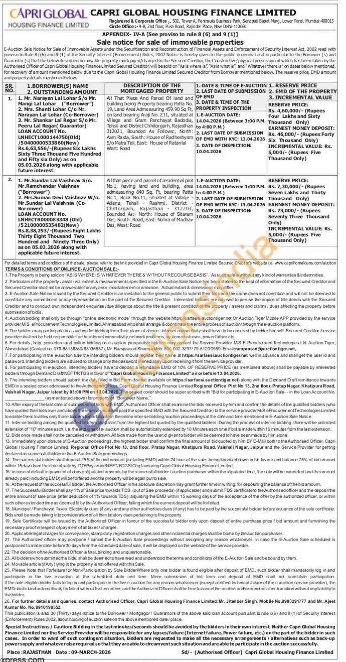 All That Piece And Parcel of land and building being Property bearing Patta No. 19, Land Area Admeasuring 459.90 Sq Ft, on land bearing Araji No. 211, situated at Village and Gram Panchayat Badodia, Tehsil and District Chhitorgarh, Rajasthan 312021, Bounded As Follows:, North: Aam Rasta, South: House of Radheshyam S/o Matra Teli, East: House of Ratanial West: Road