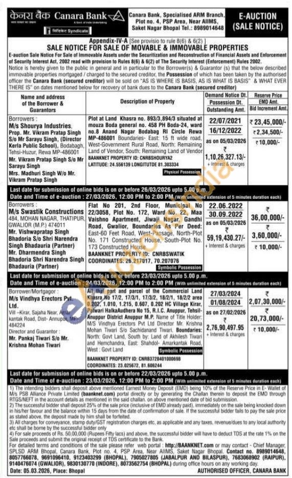 Plot at Land Khasra no. 893/3,894/3 situated at mouza Boda general no. 458 PH Boda-24, ward no.8 Anand Nagar Bodabag RI Circle Rewa MP-486001 Boundaries- East: 15 ft wide road. West-Government Rural Road, North: Remaining Land of Vendor, South: Remaining Land of Vendor