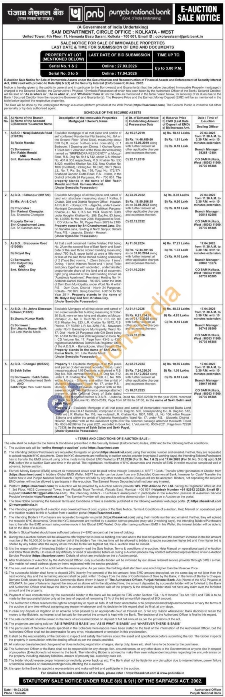 Equitable Mortgage of all that piece and parcel of two stored residential building measuring 3 Cottah 30 Sq.ft. more or less lying and situated at Mouza-Icchapur, J.L. No. 3. Touzi No. 617. R.S. No. 89, R.S. Khaitan No. 823, L.R. Khaitan No. 5872, RS. Plot No. 1717/3399, L.R. No. 3250, P.S. Nowapara under North Barrackpore Municipality, Ward No. 17. Dist-North 24 Parganas vide Gift Deed being No. 1-5134 for the year 2009 registered in Book No. 1, CD Volume No. 17, Page from 4343 to 4360 registered at Additional District Sub-Registrar, Office of the A.D.S.R.- Barrackpore, West Bengal. The Property stands in the name of Shri Jhantu Kumar Marik, Slo. Late Manilal Marik. (Under Symbolic Possession)