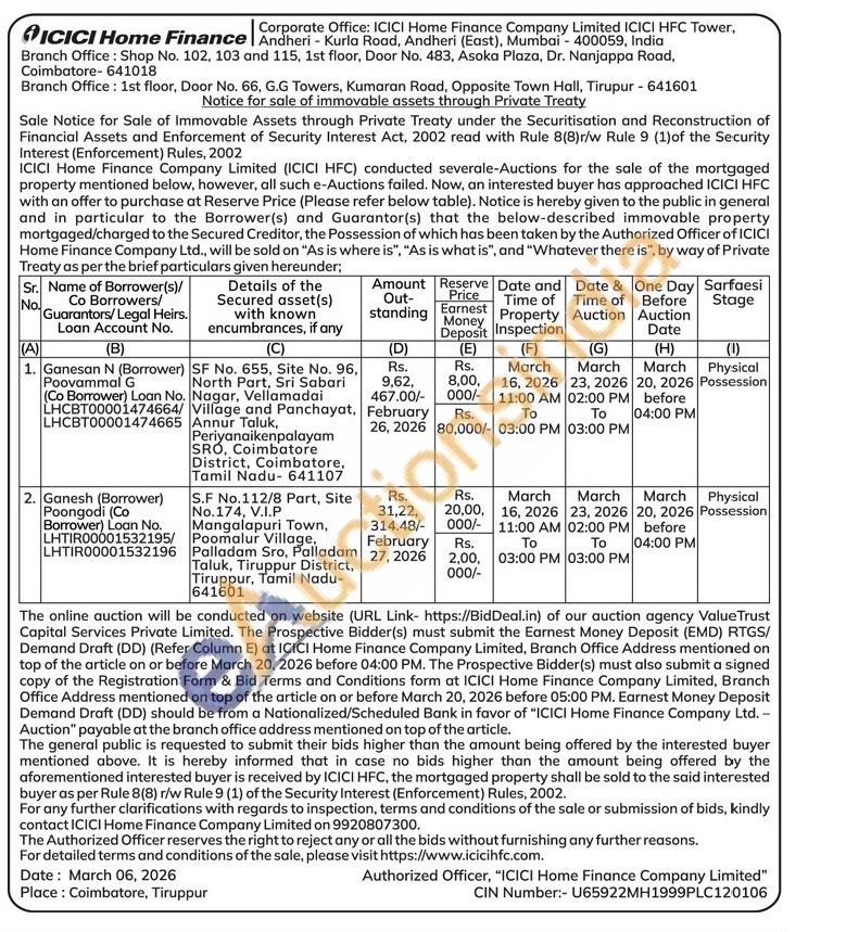 S.F No.112/8 Part, Site No.174, V.I.P Mangalapuri Town, Poomalur Village, Palladam Sro, Palladam Taluk, Tiruppur District, Tiruppur, Tamil Nadu-641601