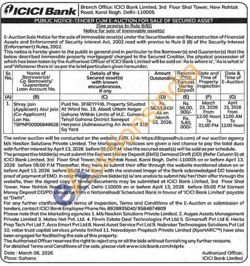 Puid No. 3F6EYFH8, Property Situated Gohana Within Limits of M.C. Gohana Tehsil Gohana District Sonepat At Ward No. 19, Abadi Uttam Nagar Haryana (Admeasuring An Area of 319 Sq Yard
