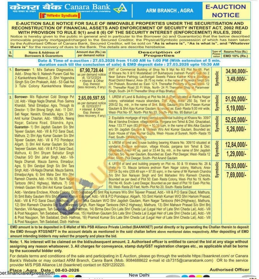 EMT of Commercial Building of Shop No 9 Mpl No 8/2 Plot No 66, Part of Khsara No 9 &10 Mustafabad Urf Bukharpura (natresh Puram) Gali No 2 Near Sahara Pathlogy Lab/bangali Sweets Palace Kanker Khera Sardhana Road District Meerut, Area-26.75 sq meter, in the name of Yogendra Singh Slo Om Prakash, Bounded as: East-12 ft. Thereafter Proeprty of Gopal, West- 12 Ft. Thereafter Road 20 Ft Wide, North- 24 Ft Thereafter Shop of Paramveer Singh, South-24 Ft. Thereafter Shop of Raju Bhatiya