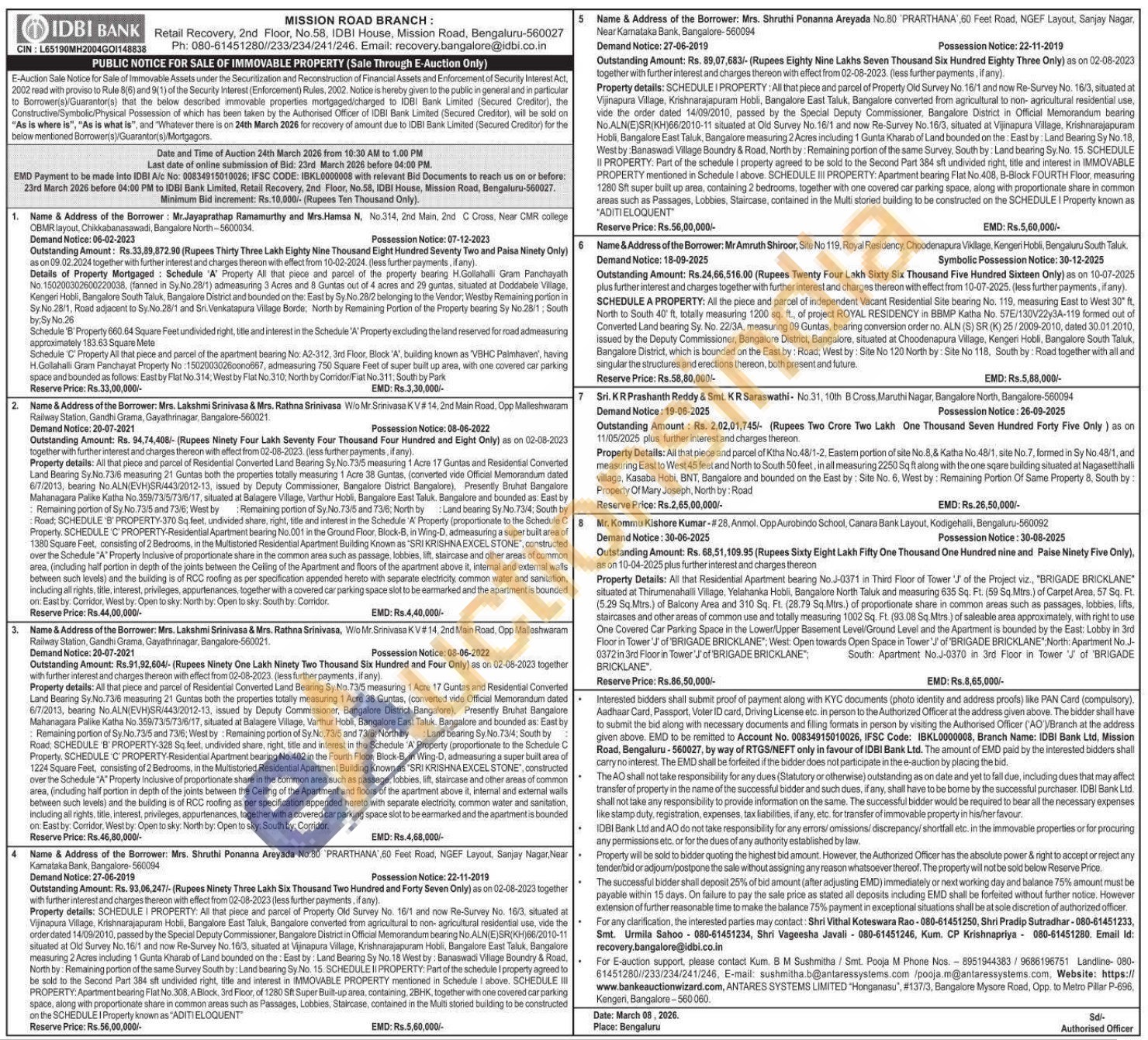 4) SCHEDULE PROPERTY: As that piece and parcel of Property Old Survey No. 16/1 and now Re-Survey No 16/3, situated at Viinapura Village, Krishnarajapuram Hobi, Bangalore East Taluk, Bangalore converted from agricultural to non-agricultural residential use, vide the order dated 14/09/2010, passed by the Special Deputy Commissioner, Bangalore District in Official Memorandum bearing No.ALN(E)SR(KH)86/2010-11 situated at Old Survey No. 16/1 and now Re-Survey No. 163, started at Vijinapura Vitage, Krishnarajapuram Hobili, Bangalore East Taluk, Bangalore measuring 2 Acnes including 1 Gunta Kharab of Land bounded on the East by: Land Bearing Sy No. 18 West by: Banaswadi Village Boundry & Road, North by Remaining portion of the same Survey South by: Land bearing Sy No. 15. SCHEDULE PROPERTY: Part of the schedule I property agreed to be sold to the Second Part 384 sft undivided right, life and interest in IMMOVABLE PROPERTY mentioned in Schedule I above. SCHEDULE PROPERTY: Apartment bearing Flat No. 308. A Black, 3rd Floor, of 1280 St Super Bull-up arma, containing, 2BHK, together with one covered car parking space, along with proportionate share in common areas such as Passages, Lobbies, Staircase, contained in the Multi stoned building to be constructed on the SCHEDULE! Property known as 'ADITI ELOQUENT