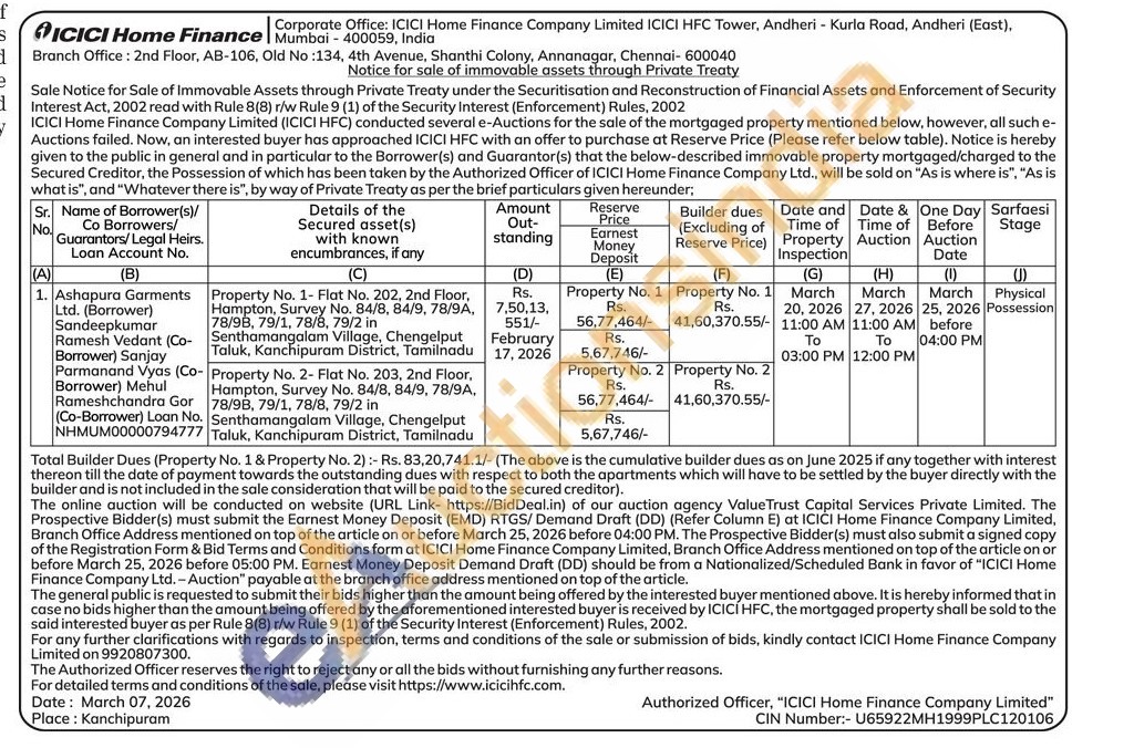 Property No. 1- Flat No. 202, 2nd Floor Hampton, Survey No. 84/8, 84/9, 78/9A, 78/98, 79/1, 78/8, 79/2 in Senthamangalam Village, Chengelput Taluk, Kanchipuram District, Tamilnadu