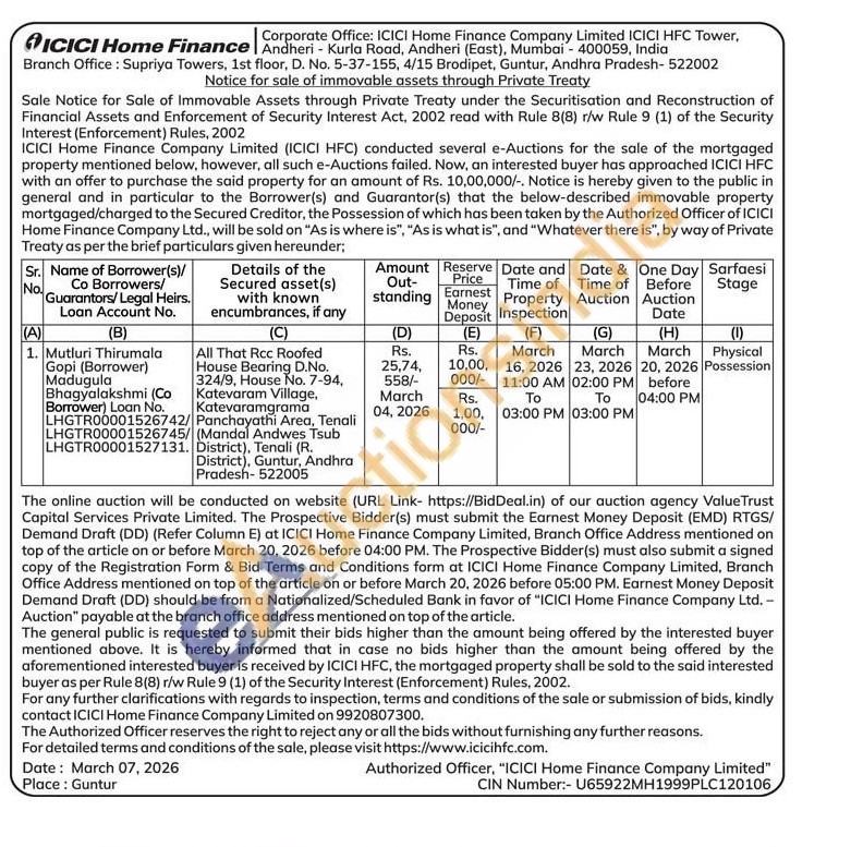 All That Rcc Roofed House Bearing D.No. 324/9, House No. 7-94 Katevaram Village Katevaramgrama Panchayathi Area, Tenali Mandal Andwes Tsub District), Tenali (R. District), Guntur, Andhra Pradesh-522005
