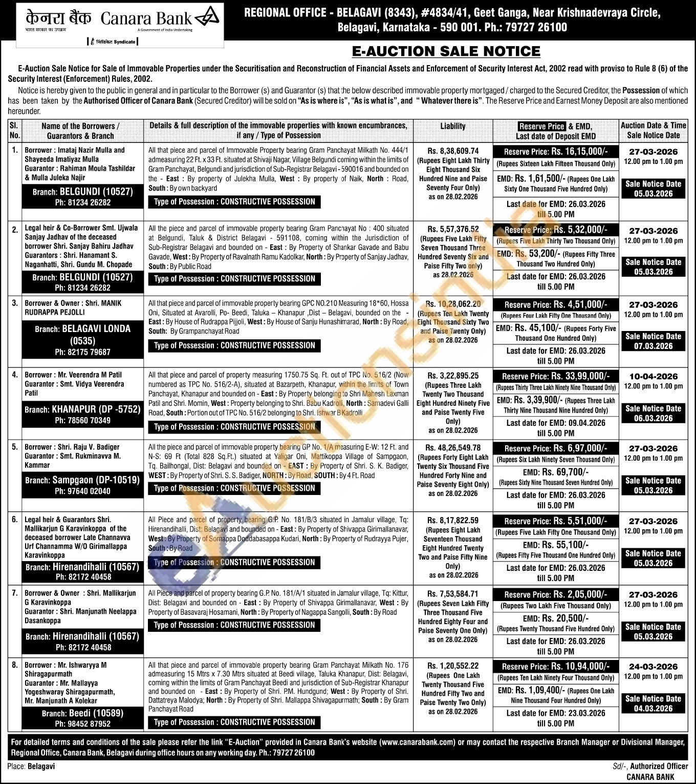 Contact Branch: KHANAPUR (DP-5752) Ph: 78560 70349