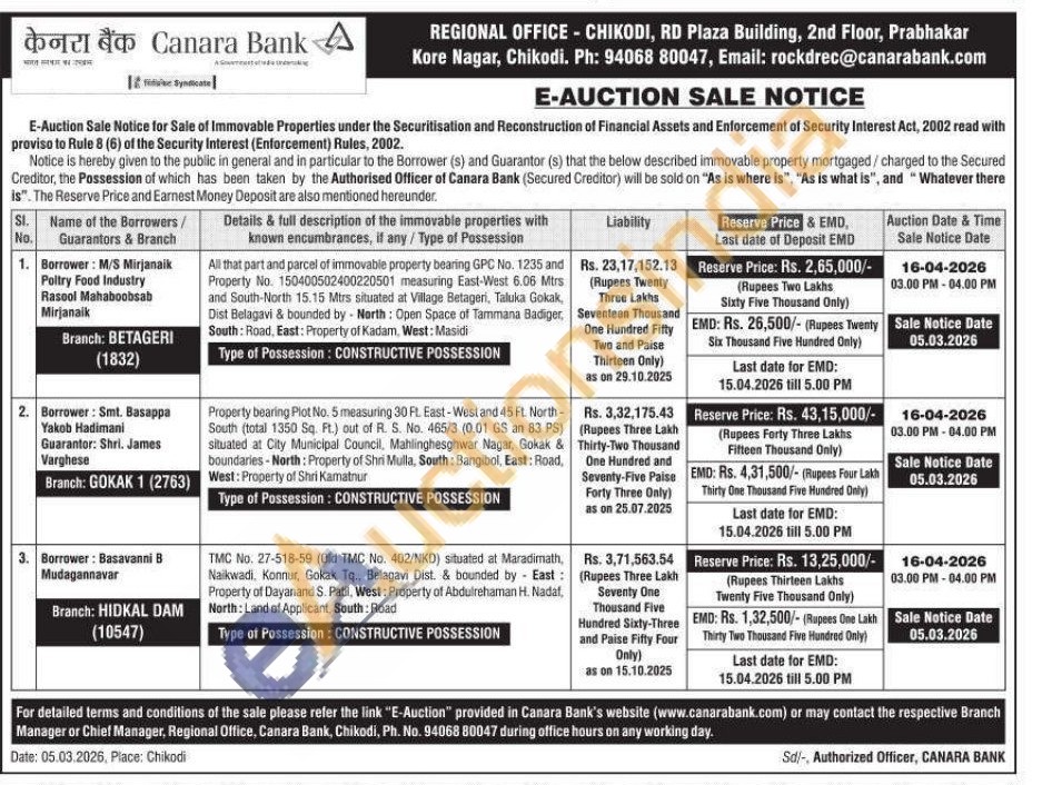 All that part and parcel of immovable property bearing GPC No. 1235 and Property No. 150400502400220501 measuring East-West 6.06 Mtrs and South-North 15.15 Mtrs situated at Village Betageri, Taluka Gokak, Dist Belagavi & bounded by North: Open Space of Tammana Badiger, South: Road, East: Property of Kadam, West: Masidi