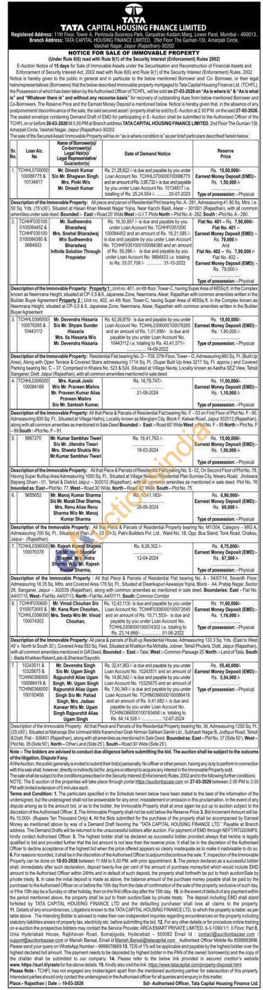 Description of the Immovable Property: All that Piece and Parcels of the Residential Property bearing No. 36, Admeasuing 1250 Sq. Ft. (25)x50), Situated at Maharaja Shri Ummaid Mils Karamchari Grah Nirman Sahkari Samit Ltd., Subhash Nagar B, Jodhpur Road, Tehsil & Distt. Pai-306401 (Rajasthan), along with all amenities as mentioned in Sale Deed Bounded as: East-Plot No. 37 (Side 50'), West-Plot No. 35 (Side 50'), North-Other Land (Side 25), South-Road 30 Wide (Side 25).