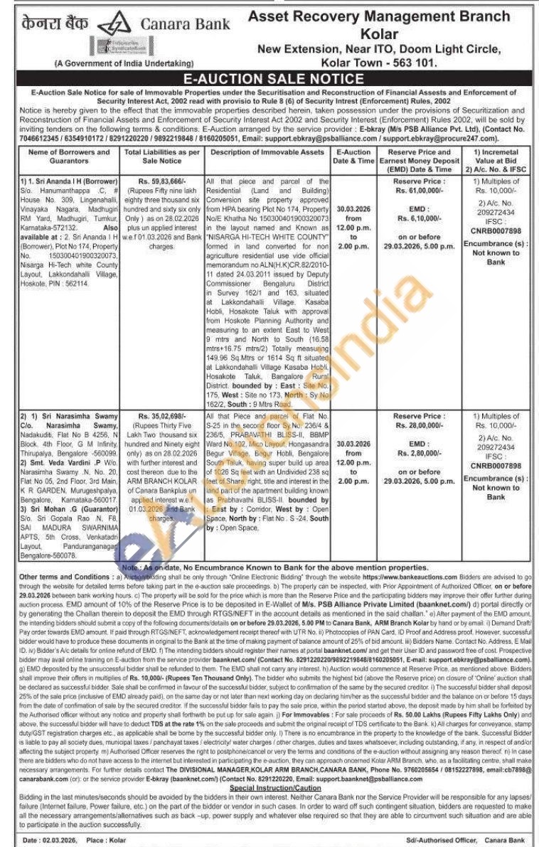 All that Piece and parcel of Fiat No S-25 in the second floor Sy No. 236/4 & 236/5, PRABAVATHI BLISS-II, BBMP Ward No. 102. Mico Layout, Hongasandra Begur Village, Begur Hobli, Bengalore South Taluk, having super build up area of 1020 Sq feet with an Individed 238 sq feet of Share, right, tittle and interest in the tand part of the apartment building known as Prabhavathi BLISS-II bounded by East by Comidor, West by: Open Space, North by: Fiat No. S-24. South by: Open Space