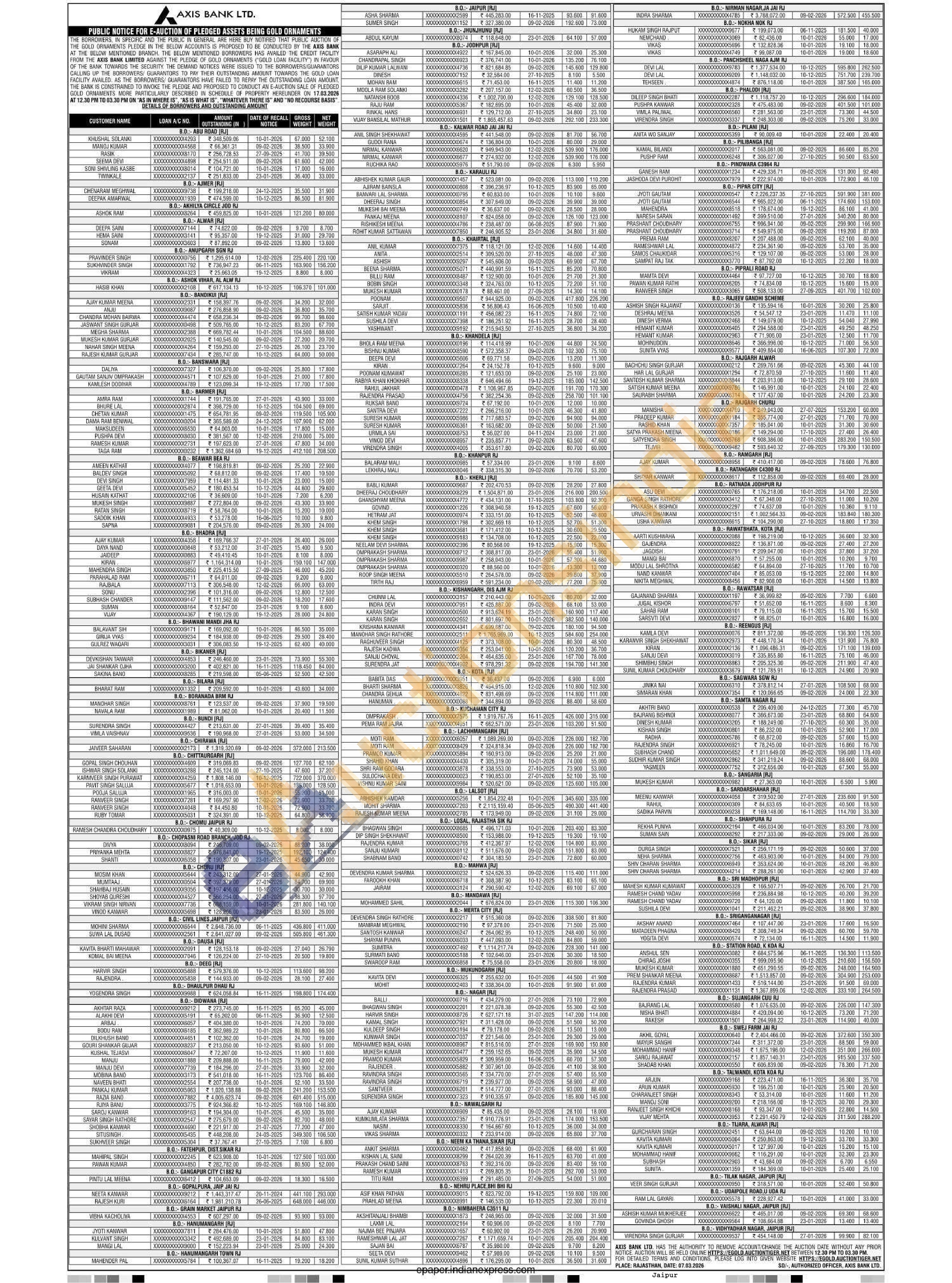 Axis Bank Gold Auctions Auction in Ajmer