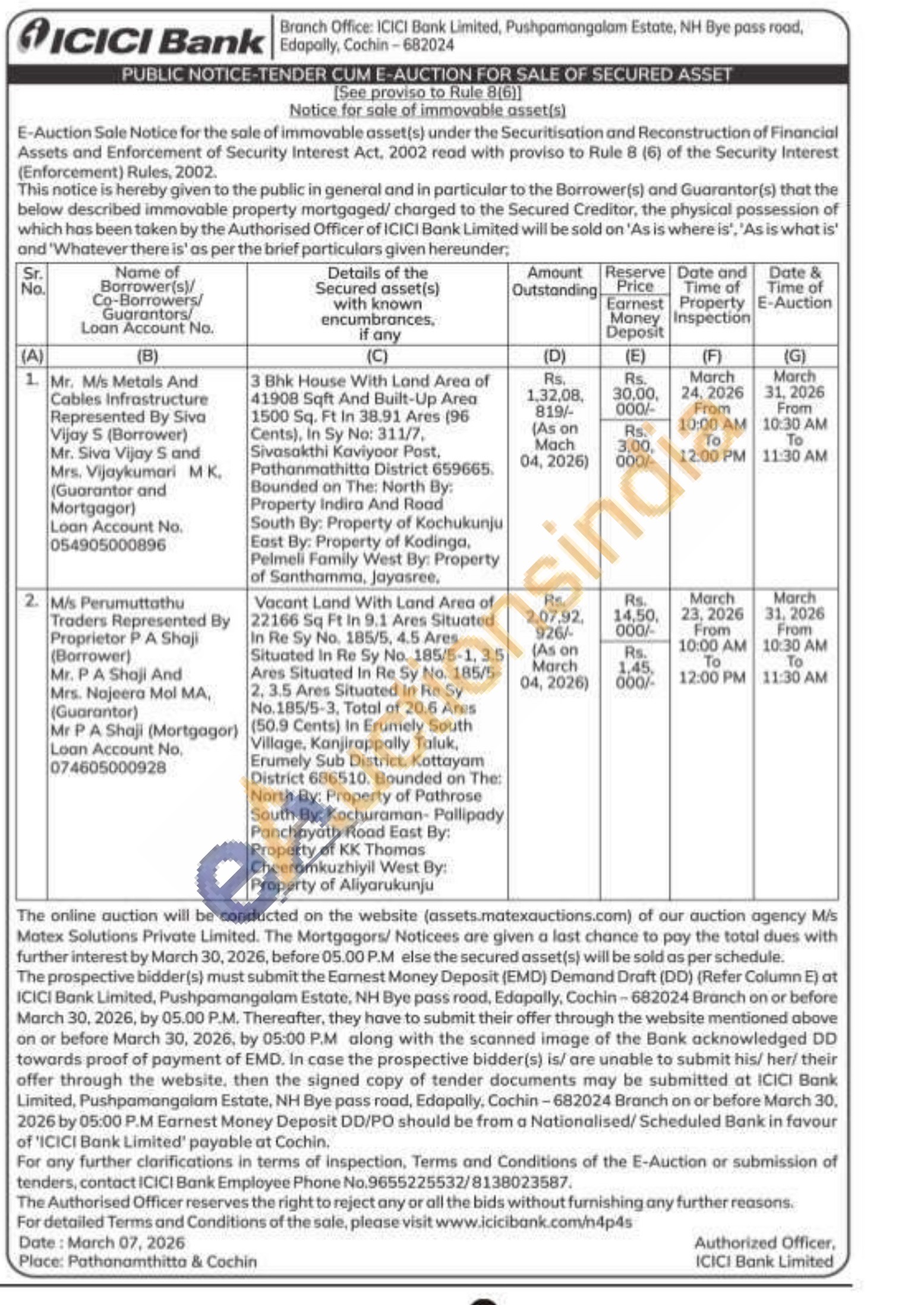 Vacant Land With Land Area of 22166 Sq Ft In 9.1 Ares Situated In Re Sy No. 185/5, 4.5 Ares Situated in Re Sy No. 185/5-1,3.5 Ares Situated In Re Sy No. 185/5-2, 3.5 Ares Situated in Re Sy No. 185/5-3. Total of 20.6 Ares (50.9 Cents) In Erumely South Village, Kanjirappally Taluk, Erumely Sub District, Kottayam District 686510. Bounded on The: North By: Property of Pathrose South By: Kochuraman-Pallipady Panchayath Road East By: Property of KK Thomas Cheeramkuzhiyil West By: Property of Aliyarukunju