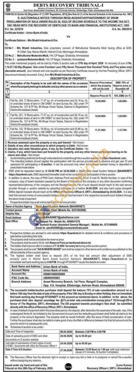 Flat No. 201, 'A' Block admn. 71.07 sq. mt. of construction and 24.16 sq. mt. of undivided share of land in OM ORBIT on land Survey No. 282 under TP Scheme No. 127 & FP No. 86 Mouje Vinzol Taluka, Dascroi in Registration District Ahmedabad (Aslali).