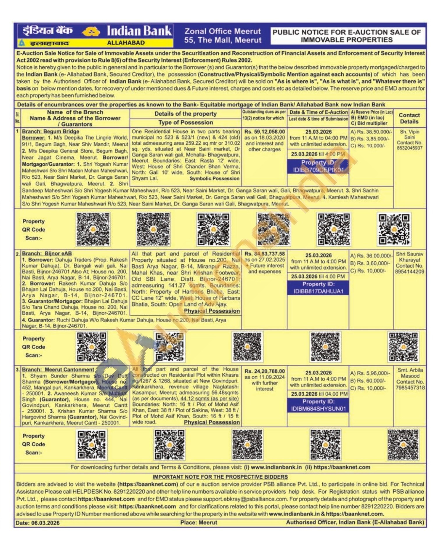 All that part and parcel of the House constructed on Residential Plot within Khasra no.1267 & 1268, situated at New Govindpuri, Kankarkhera, revenue village Naglatashi Kasampur, Meerut; admeasuring 56.48sqmts (as per documents), 44.12 sqmts (as per site) Boundaries: North: 16 ft/Plot of Mohd Asif Khan, East: 38 ft/Plot of Sakina, West: 38ft/Plot of Mohd Asif Khan, South: 16 ft/15 ft wide road.