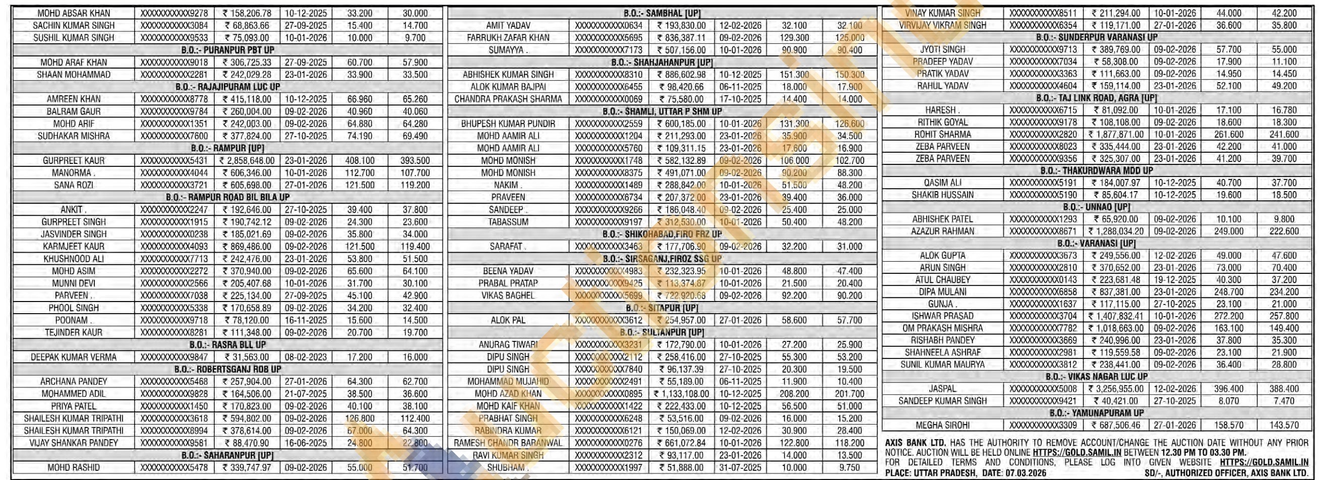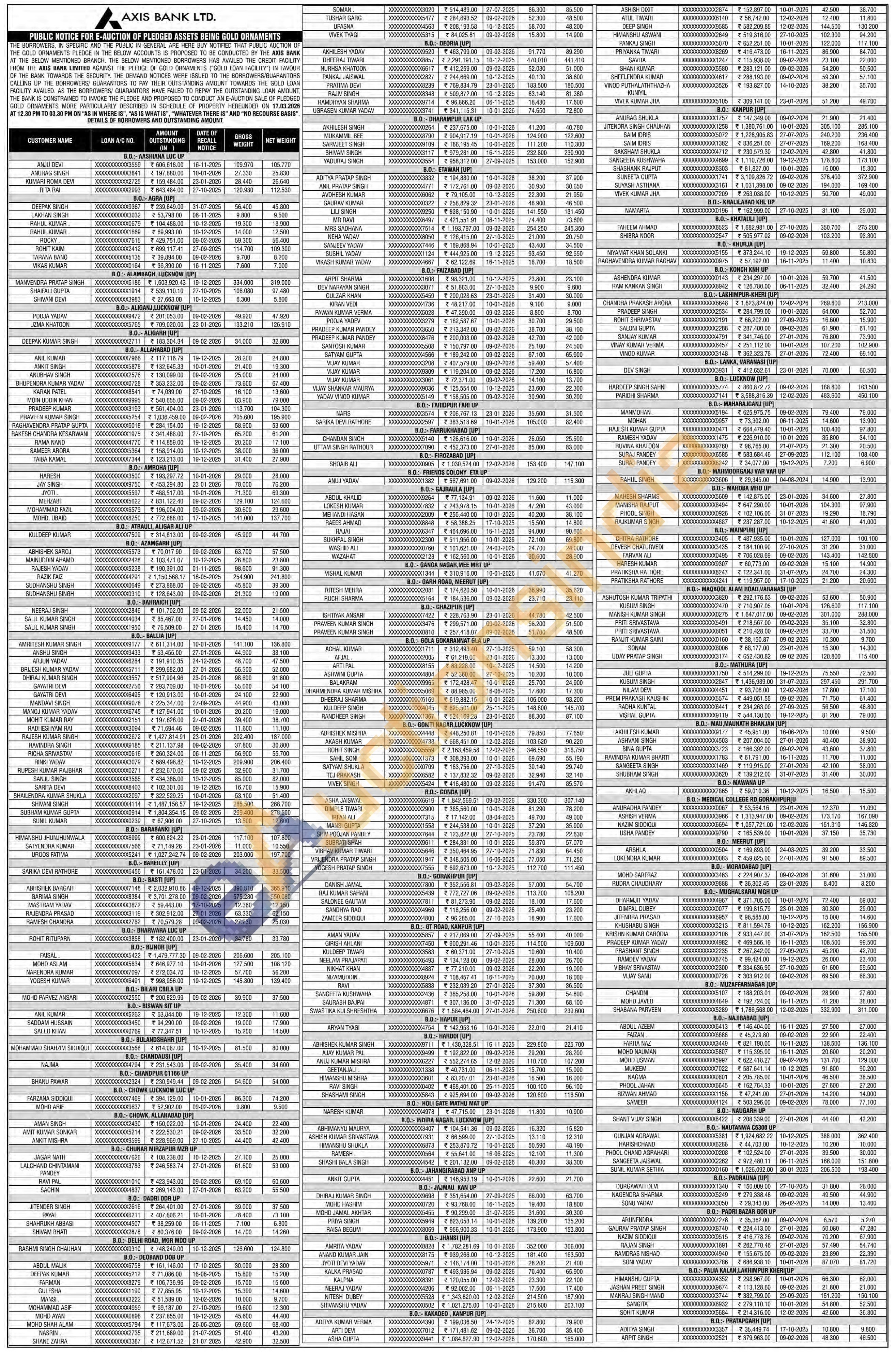 Axis Bank Gold Auctions Auction in Agra