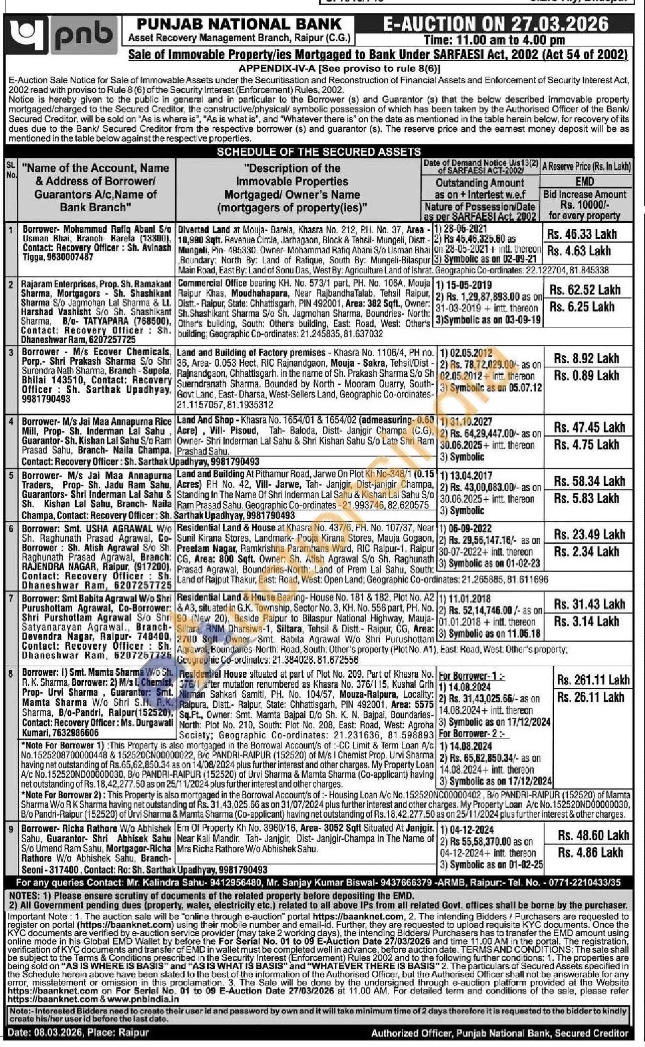 Mr. Kalindra Sahu-9412956480, Mr. Sanjay Kumar Biswal-9437666379,Tel. No. - 0771-2210433/35