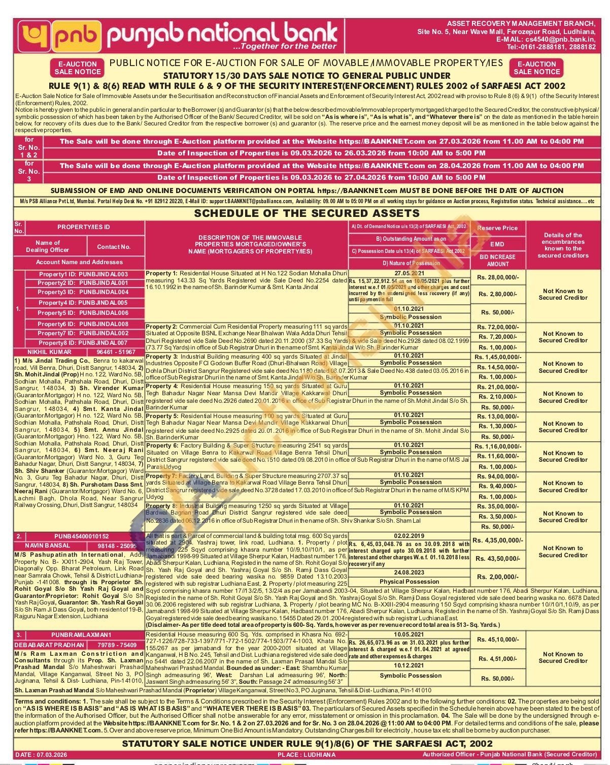 Residential House measuring 600 Sq. Yds. comprised in Khasra No. 692-727-1226/728-733-1397/771-772-1502/774-1503/774-1003, Khata No. 155/267 as per jamabandi for the year 2000-2001 situated at Village Kanganwal, HB No. 245, Tehsil and Dist. Ludhiana registered vide sale deed no 5441 dated 22.06.2007 in the name of Sh. Laxman Prasad Mandal S/o Maheshwari Prashad Mandal. Bounded as under: - East: Shambhu Kumar Singh admeasuring 96', West Darshan Lal admeasuring 96', North: Jaswant Singh admeasuring 56' 3", South: Passage 24' admeasuring 56' 3