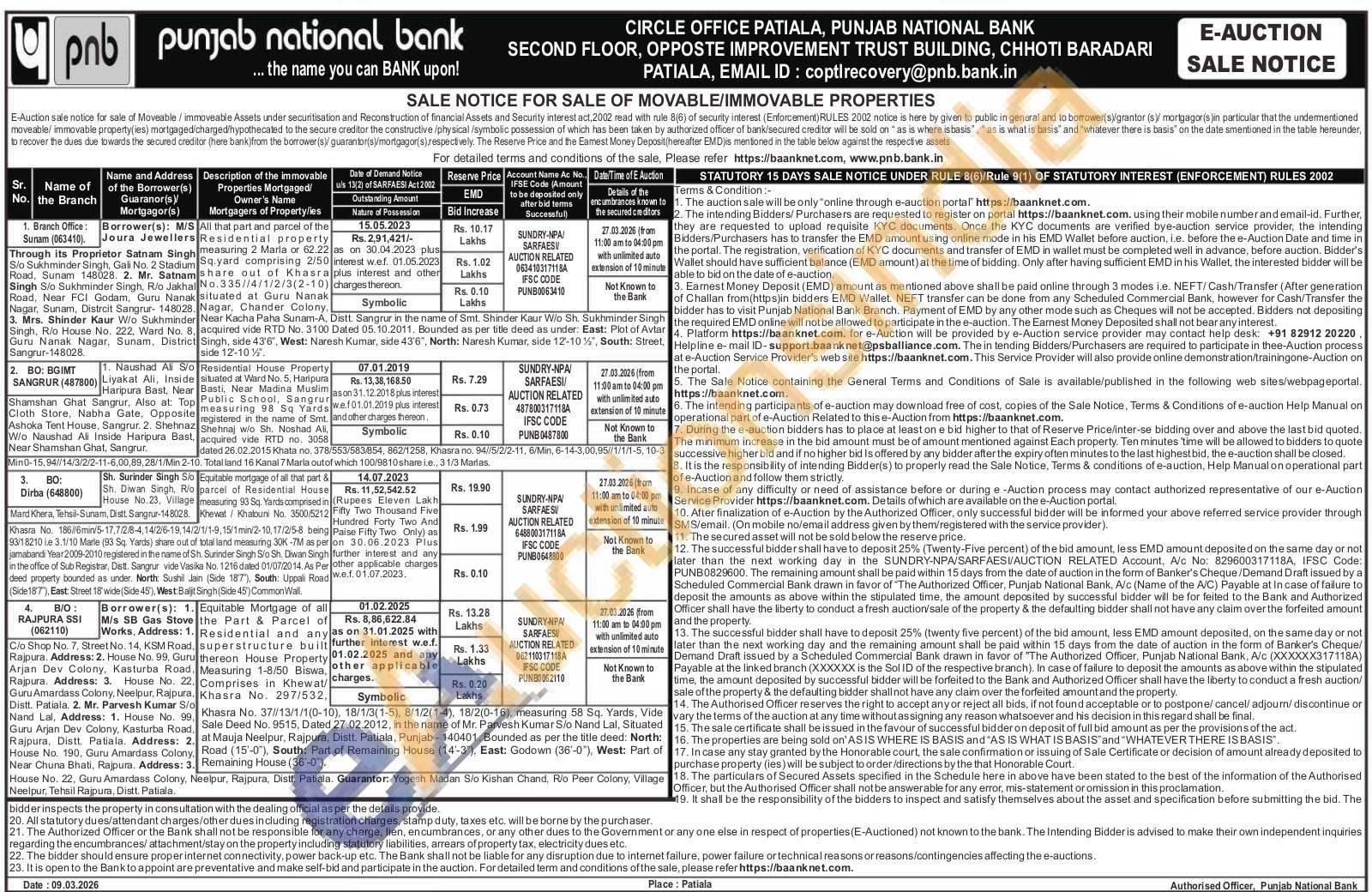 All that part and parcel of the Residential property measuring 2 Marla or 62.22 Sq.yard comprising 2/50 share out of Khasra No.335//4/1/2/3(2-10) situated at Guru Nanak Nagar, Chander Colony, side 12-10%.Near Kacha Paha Sunam-A, Distt. Sangrur in the name of Smt. Shinder Kaur W/o Sh. Sukhminder Singh acquired vide RTD No. 3100 Dated 05.10.2011. Bounded as per title deed as under: East: Plot of Avtar Singh, side 43'6", West: Naresh Kumar, side 43'6", North: Naresh Kumar, side 12-10½", South: Street,