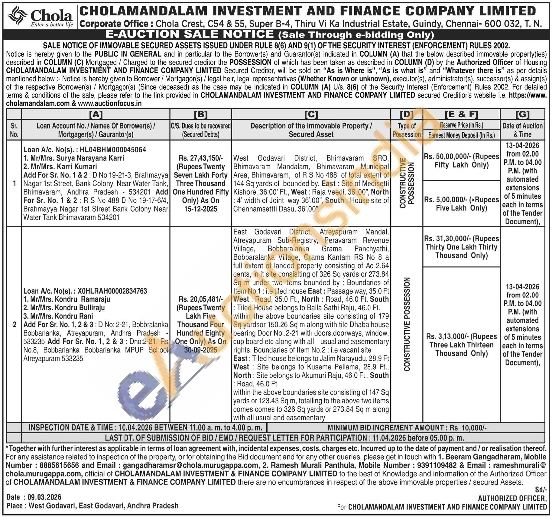 East Godavari District, Atreyapuram Mandal, Atreyapuram Sub-Registry, Peravaram Revenue Village, Bobbaralanka Grama Panchyathi, Bobbaralanka Village, Grama Kantam RS No 8 a full extent of landed property consisting of Ac 2.64 cents, in it site consisiting of 326 Sq yards or 273.84 Sq m under two items bounded by: Boundaries of Item No.1: i.e tiled house East: Passage way, 35.0 Ft West: Road, 35.0 Ft., North: Road, 46.0 Ft. South Tiled House belongs to Balla Sathi Raju, 46.0 Ft. within the above boundaries site consisting of 179 Sq yardsor 150.26 Sq m along with tile Dhaba house bearing Door No.2-21 with doors, doorways, window, cup board etc along with all usual and easementary rights. Boundaries of Item No.2: i.e vacant site East: Tiled house belongs to Jalim Narayudu, 28.9 Ft West: Site belongs to Kuseme Pellama, 28.9 Ft., North: Site belongs to Akumuri Raju, 46.0 Ft., South Road, 46.0 Ft