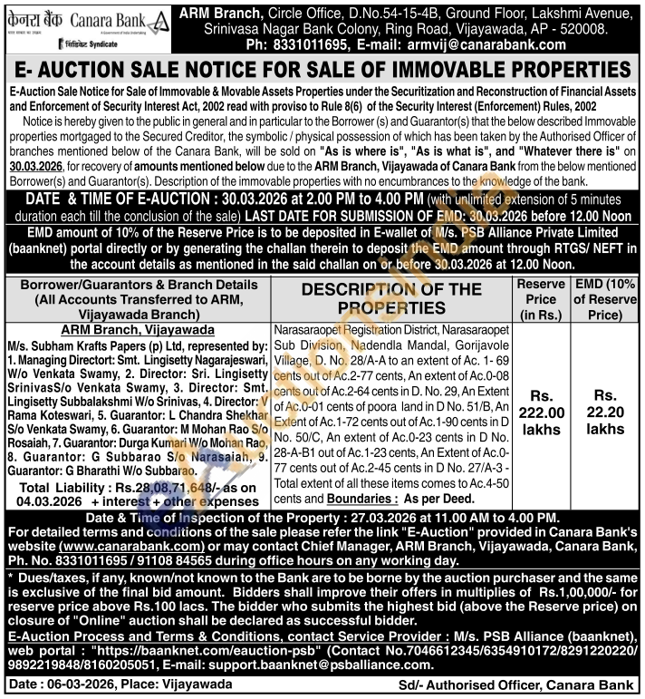Narasaraopet Registration District, Narasaraopet Sub Division, Nadendla Mandal, Gorijavole Village, D. No. 28/A-A to an extent of Ac. 1-69 cents out of Ac.2-77 cents, An extent of Ac.0-08 cents out of Ac.2-64 cents in D. No. 29, An Extent of Ac.0-01 cents of poora land in D No. 51/B, An Extent of Ac. 1-72 cents out of Ac. 1-90 cents in D No. 50/C, An extent of Ac.0-23 cents in D No. 28-A-B1 out of Ac. 1-23 cents, An Extent of Ac.0-77 cents out of Ac.2-45 cents in D No. 27/A-3-Total extent of all these items comes to Ac.4-50 cents and Boundaries: As per Deed