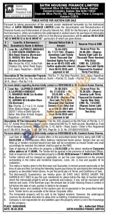 Description Of The Immovable Property:-Flat No. 803 situated on the 8th Floor of Plot No. C-11 &C-12, Ashok Vihar, Malviya Nagar, Jaipur, measuring 982 Sq. Ft. built-up area. Bounded as: East -Plot of Nandpuri Scheme, West-Plot No. C-10, North-Road, South-Other's Plot. Registered on 07-08-2018, Book No. 1, Vol. No. 440, Page No. 9. Sl. No. 201803018102828.