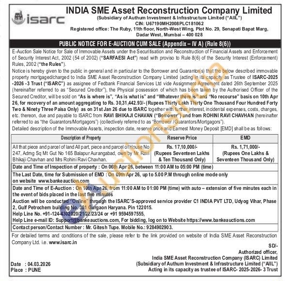 All that piece and parcel of land All part, piece and parcel of House No 247, Admg Sq Mt Gut No 165 Balapur Aurangabad, own by Mr Ravi Bhikaji Chavhan and Mrs Rohini Ravi Chavhan