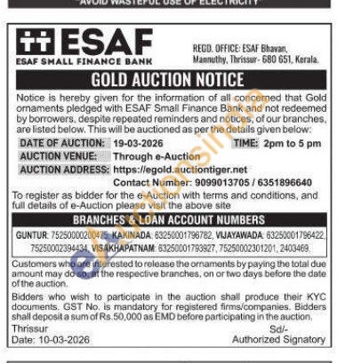 ESAF SMALL FINANCE BANK Gold Auctions Auction in Thrissur