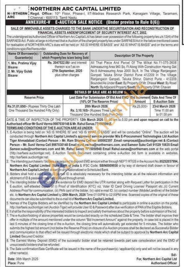 All That Piece And Parcel Of The Milkat No. 11-075-2608 Admeasuring Area 960 Sq. Ft Along With Construction Having Gat No.5 Admeasuring Area 2000 Sq.ft. In The Village Ranjangaon Ganpati Taluka Shirur District Pune 412209 In The Village Ranjangaon Ganpati, Taluka Shirur, District Pune 412209 Bounded As Under East: By Property Of Mr. Dhasal West: By Road North: By Adjacent Property South: By Property Of Mr. Chavan
