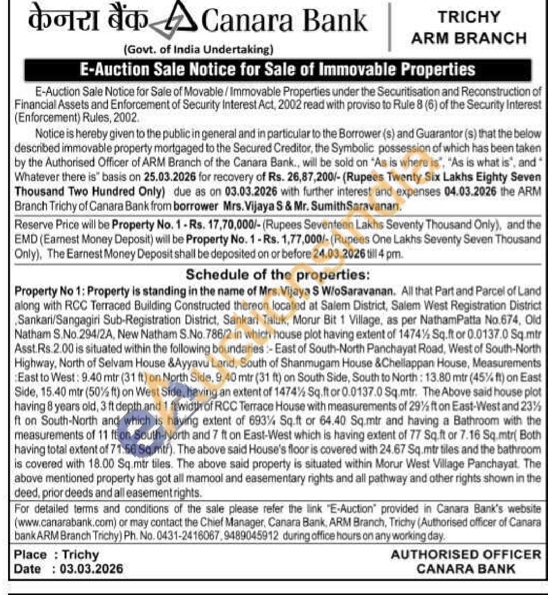 • Auction Start Date :  25-03-2026 11:00 AM