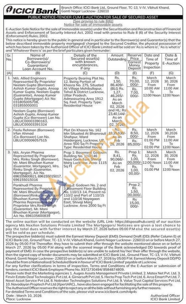 Property Bearing Plot No. 12. Being Portion of Khasra No. 275, Situated At Village Mohibullapur, Tehsil & District Lucknow Uttar Pradesh. Admeasuring Area 1912 Sq. Feet. Property Type: Residential House