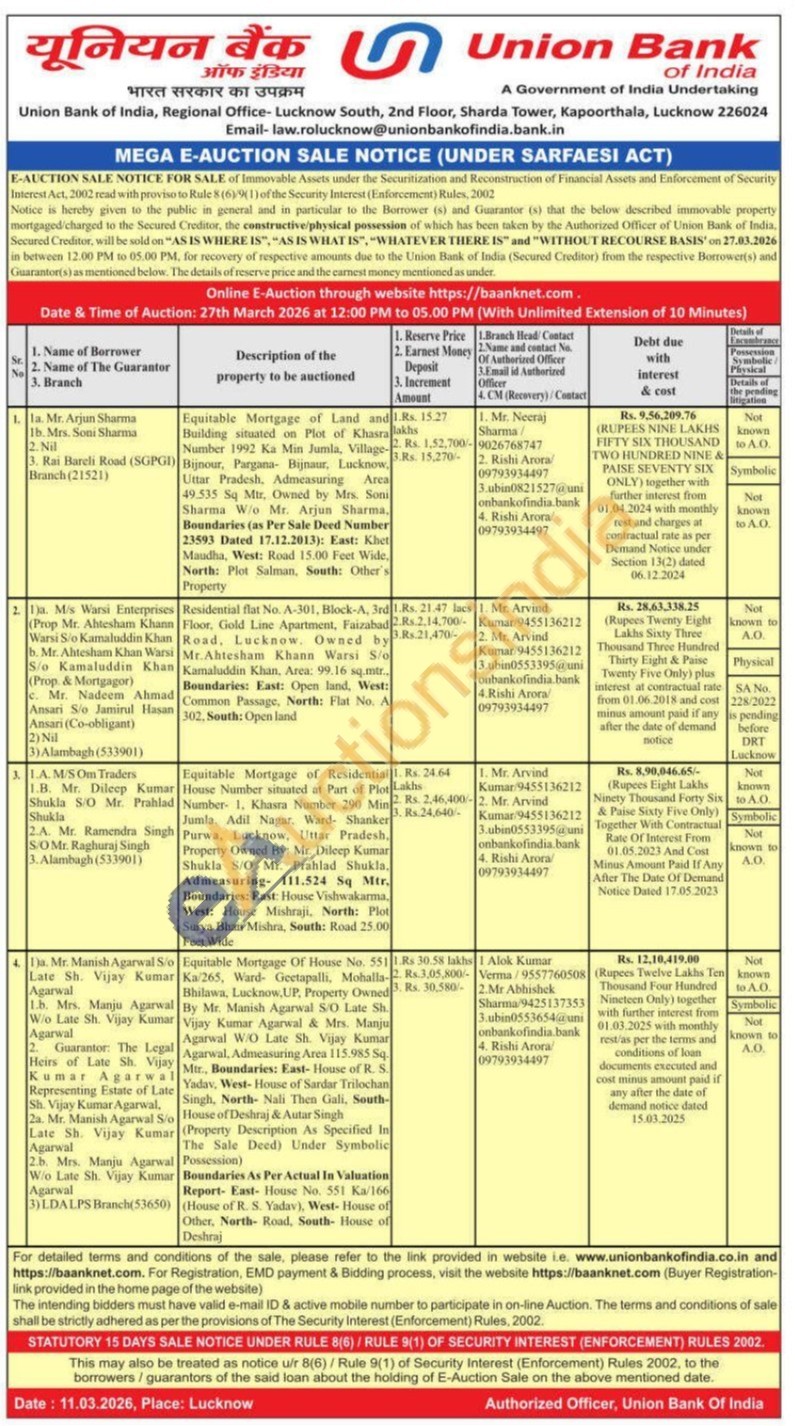 Equitable Mortgage of Residential Home Number situated at Part of Plon Number 1, Khasra Number 290 Min Jumla, Adil Nagar, Wand- Shanker Purwa, Lucknow, Uttar Pradesh, Property Owned By: Mr. Dileep Kumar Shukla S/O Mr. Prahlad Shukla, Admeasuring- 111.524 Sq Mtr. Boundaries: East House Vishwakarma West: House Mishraji, North: Plot Surya Bhan Mishra, South: Road 25.00 Feet Wide