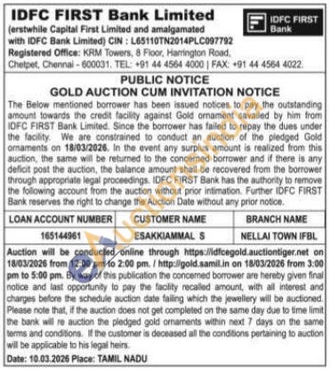 IDFC First Bank Ltd Gold Auctions Auction in Tirunelveli