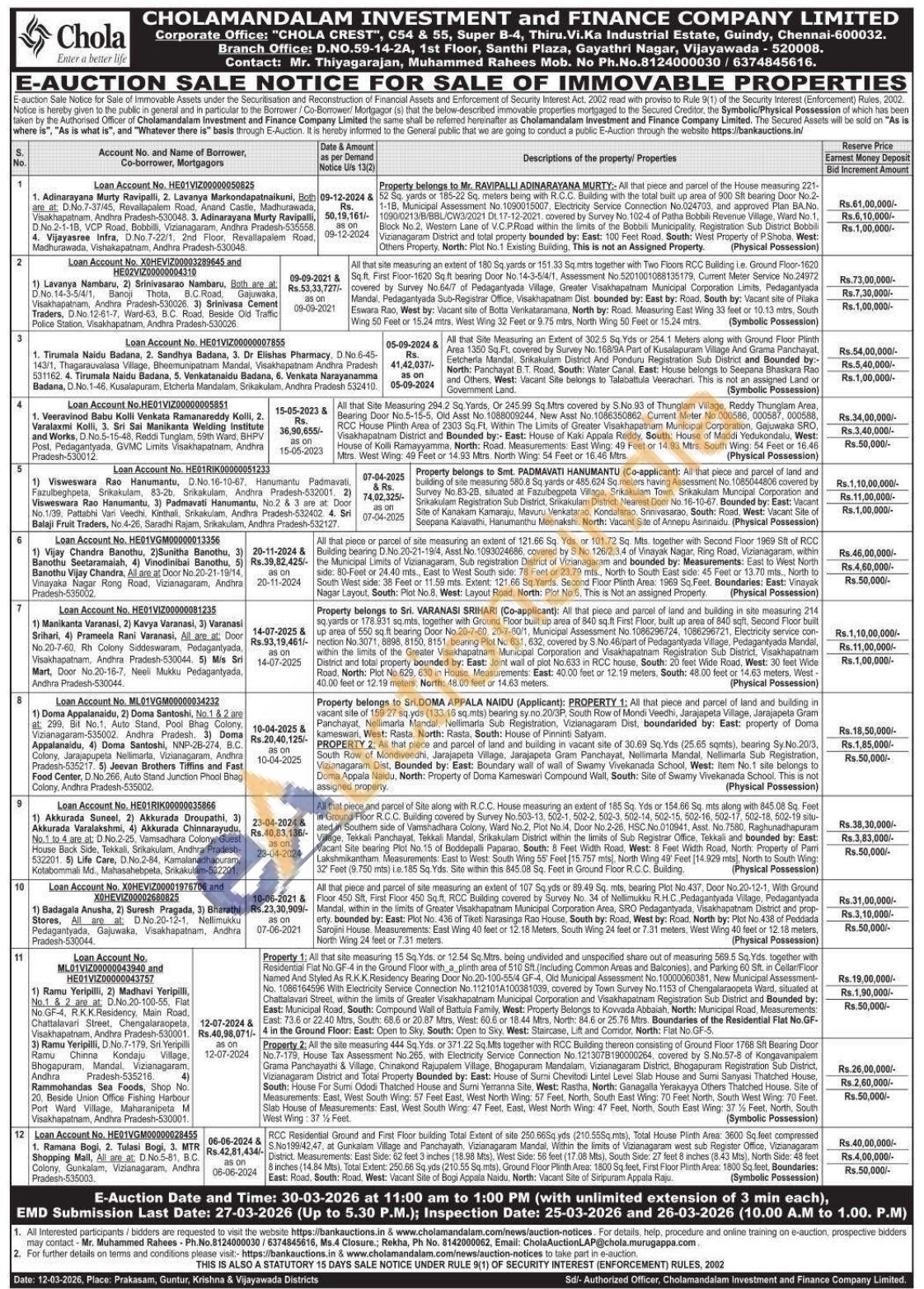 2) All that site measuring an extent of 180 Sq yards or 151.33 Sq.mtrs together with Two Floons RCC Building ie. Ground Floor-1620 Sq. ft. First Floor-1620 Sq.ft bearing Door No. 14-3-5/4/1, Assessment No.5201001088135179, Current Meter Service No.24972 - covered by Survey No.64/7 of Pedagantyada Village, Greater Visakhapatnam Municipal Corporation Limits, Pedagantyada Mandal, Pedagantyada Sub-Registrar Office, Visakhapatnam Dist bounded by: East by: Road, South by: Vacant site of Pilaka Eswara Rao, West by: Vacant site of Botta Verkataramana, North by: Road. Measuring East Wing 33 feet or 10.13 mtrs, South Wing 50 Feet or 15.24 mtrs, West Wing 32 Feet or 9.75 mitrs, North Wing 50 Feet or 15.24 mtrs (Symbolic Possession)