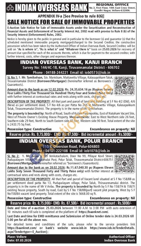 Contact no 04181-222108 Email id: iob1078@iob.in
