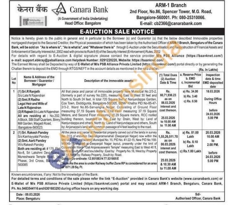 All the piece and parcel of Residential property carved out of the lands in survey No. 31/1 of erstwhile Deevatigeramanahali (Deepanjali Nagar) now within the limit of BBMP and bearing Municipal No. 15, PID No. 41-22-15, New PID No. 158-W0045-16 situated at Deepanjali Nagar layout, presently under the limit of Corporation Ward- "Gali Anjaneyaswami Temple" measuring East to West 40 ft. North to South 50ft and bounded by: East by: Property No. 16, West by: Property No. 14, North by: Railway Property, South by Road.