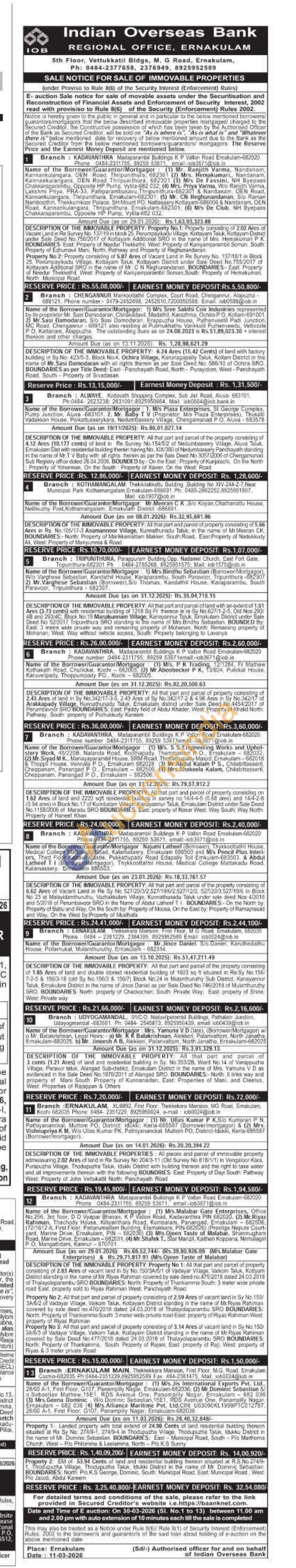 Contact Branch : ERNAKULAM MAIN Ph:0484-2351229,8925962589