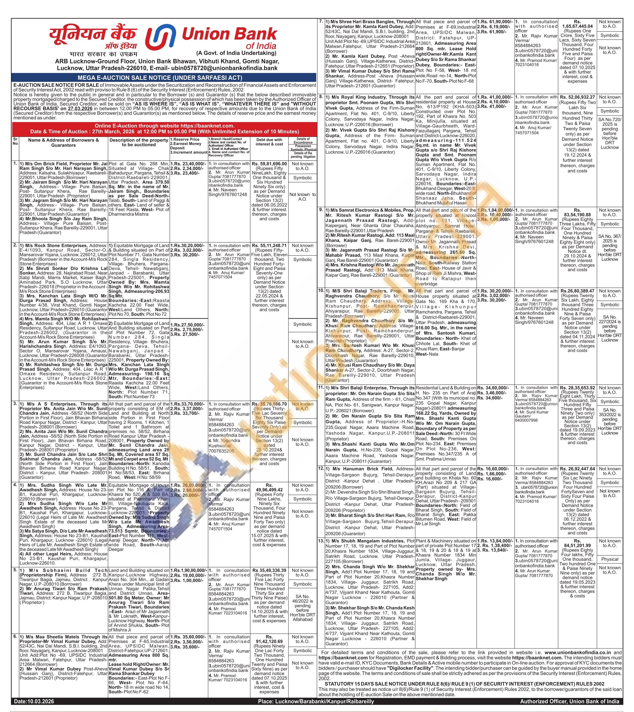 All that part and parcel of the property consisting of Land and building on Khata No. 60 KH,Arazi No 209 & 217 GA (Part) situated at Village-Sargaon Bujurg. Tehsil-Derapur, District- -Kanpur Dehat, Uttar Pradesh-209301 Boundaries-:North: Field of Bharat Singh, South: Field of Bharat Singh, East: Pakka Bitumen Road, West: Field of Mr Lal Singh
