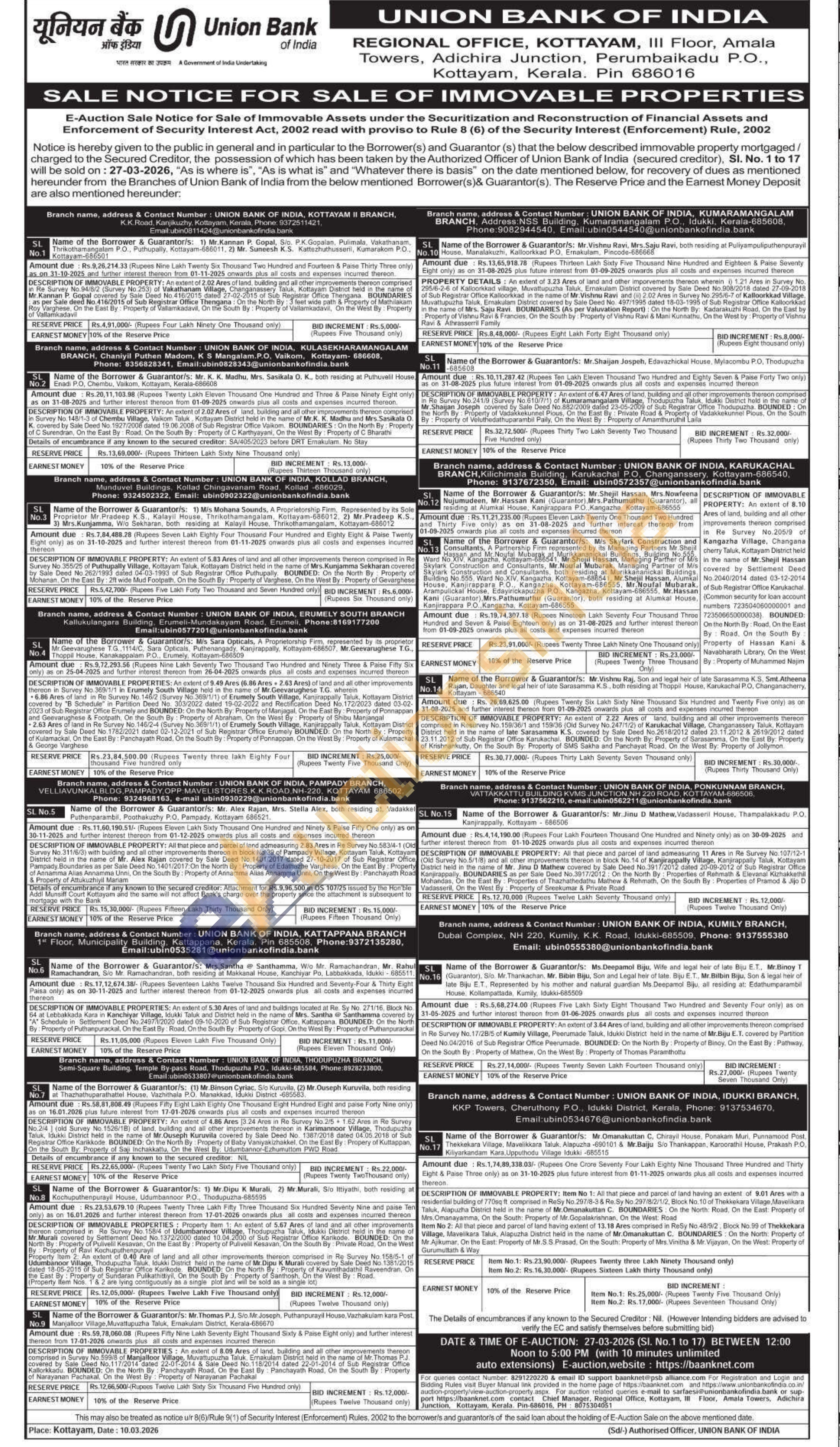 9) An extent of 8.09 Ares of land, building and all other improvements thereon comprised in Survey No 599/8 of Manjalloor Village. Muvattupuzha Taluk. Emakulam District held in the name of Mr.T Mr. Thomas P.J covered by Sale Deed No.117/2014 dated 22-01-2014 & Sale Deed No. 118/2014 dated 22-01-2014 of Sub Registrar Office Kallorkkadu. BOUNDED: On the North By Panchayath Road. On the East By: Panchayath Road, On the South By: Property of Narayanan Pachakal. On the West By: Property of Narayanan Pachakal