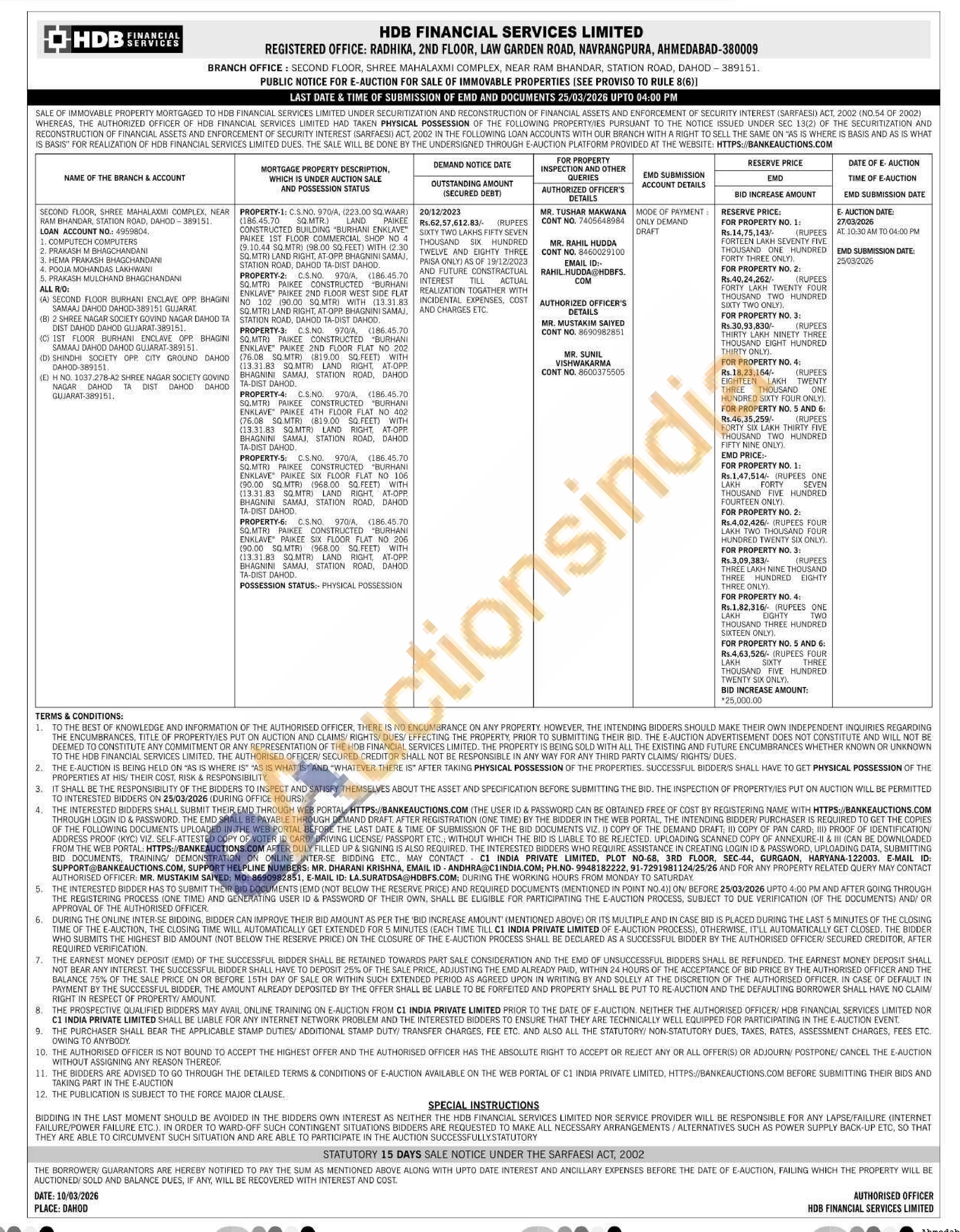 C.S.NO. 970/A, (186.45.70 SQ.MTR) PAIKEE CONSTRUCTED BURHANI ENKLAVE" PAIKEE SIX FLOOR FLAT NO 206 (90.00 SQ.MTR) (968.00 SQ.FEET) WITH (13.31.83 SQ.MTR) LAND RIGHT, AT-OPP BHAGNINI SAMAJ, STATION ROAD, DAHOD TA-DIST DAHOD.