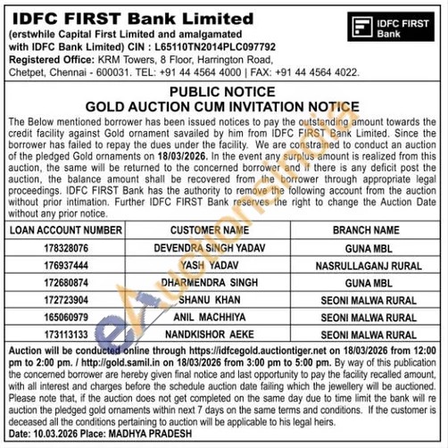 IDFC First Bank Ltd Gold Auctions Auction in Guna