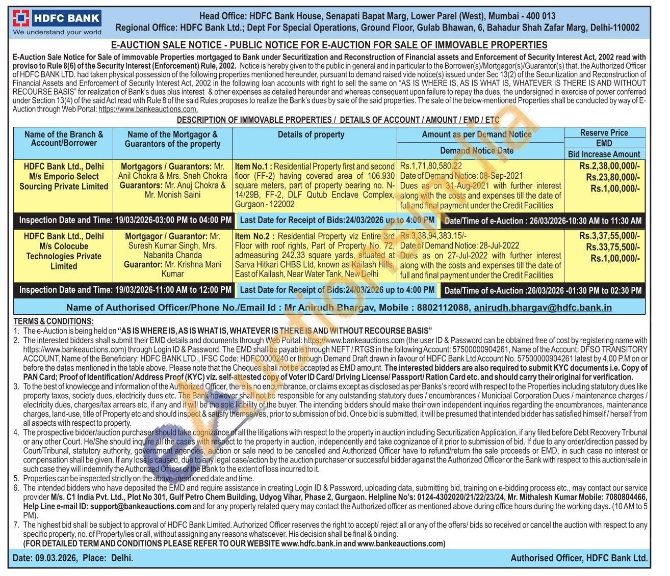 Item No.2: Residential Property viz Entire 3rd Floor with roof rights, Part of Property No. 72, admeasuring 242.33 square yards, situated at Sarva Hitkari CHBS Ltd, known as Kailash Hills, East of Kailash, Near Water Tank, New Delhi