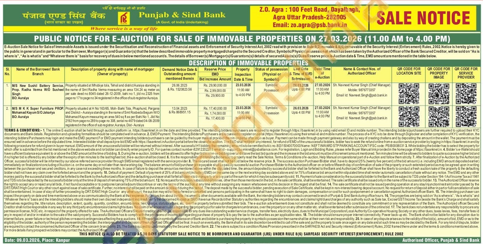 Property situated at H No 163/85, Moh-Barki Tola, Phaphund, Pargana and District-Auraiya standing in the name of Smt Roobeda Begum WO Mohamad Kayum measuring an area 540 sq ftas per Bahi No 1, Jild No 2192 from page no 289 to page no 308, serial no 4679 dated 04-08-2009 egistered in the office of subregistrar, Auraiya, Dist-Auraiya