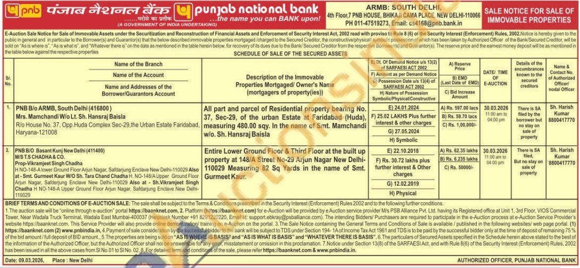 Entire Lower Ground Floor & Third Floor at the built up property at 148/A Street No-29 Arjun Nagar New Delhi-110029 Measuring 82 Sq Yards in the name of Smt. Gurmeet Kaur.