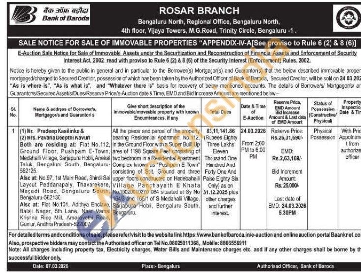 All the piece and parcel of the property bearing Residential Apartment No.112, in the Ground Floor with a Super Built Up area of 1198 Square Feet consisting of two bedroom in a Residential Apartment Complex known as "Pushpam E Town" consisting of Stilt, Ground and three upper floors constructed on Hadebahalli Village Panchayath E Khata No.150200102701084 situated at Sy No 164/3 and 165/1 of S Medahalli Village, Sarjapura Hobli, Bengaluru South, Bengaluru.